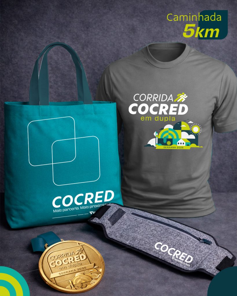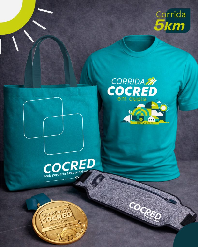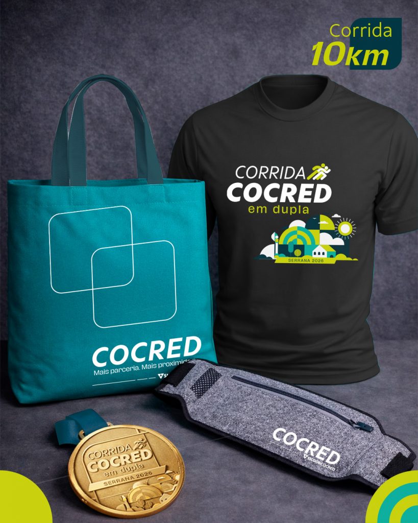 Contando os dias para a 6ª edição da Corrida COCRED em Dupla – Etapa Serrana? A prova está chegando e o seu kit atleta já está esperando por você. Composto por camiseta oficial, bag, pochete, número de peito e chip de cronometragem, o kit poderá ser retirado em dois dias e locais diferentes:
